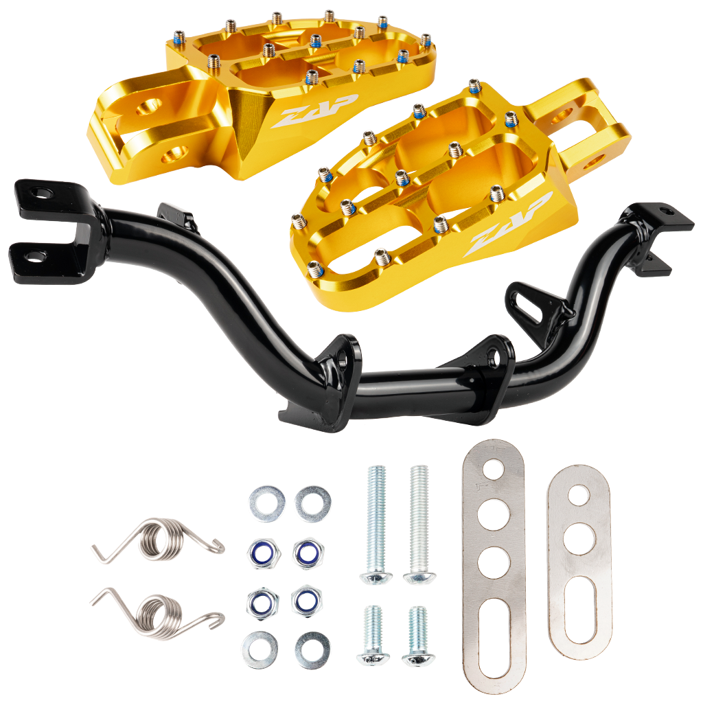 Fußrastenträger verstärkt, mit Abstützung (schwarz pulverbeschichtet) mit ZAP Fußrasten (gold eloxiert)