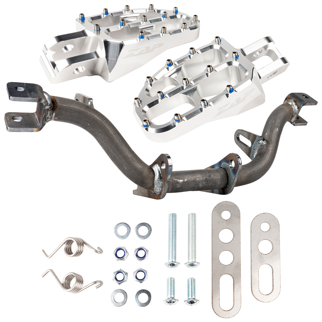 Fußrastenträger verstärkt, mit Abstützung (unbeschichtet) mit ZAP Fußrasten (silber eloxiert)