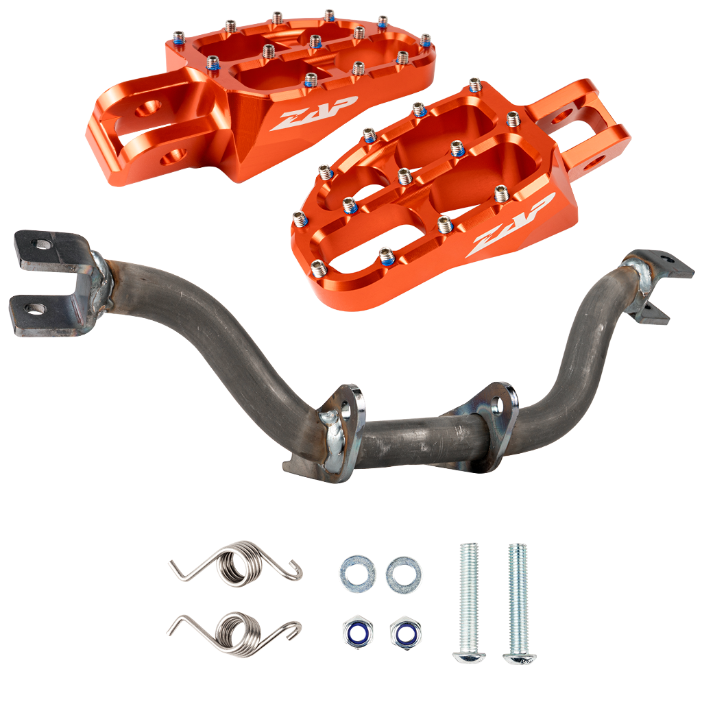 Fußrastenträger verstärkt (unbeschichtet) mit ZAP Fußrasten (orange eloxiert)