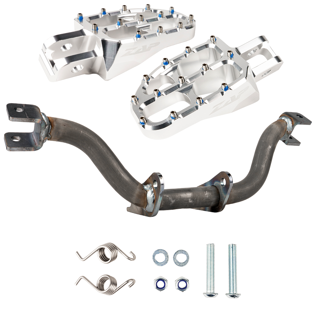 Fußrastenträger verstärkt (unbeschichtet) mit ZAP Fußrasten (silber eloxiert)